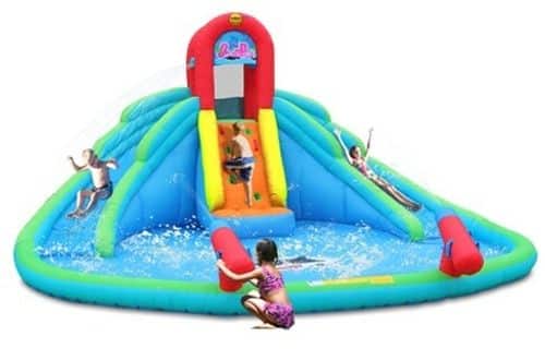 - הילדים מטפסים מהבריכה לתוך משטח קפיצה, ממשטח הקפיצה עולים למגלשה ומשם מתגלשים לתוך בריכה.